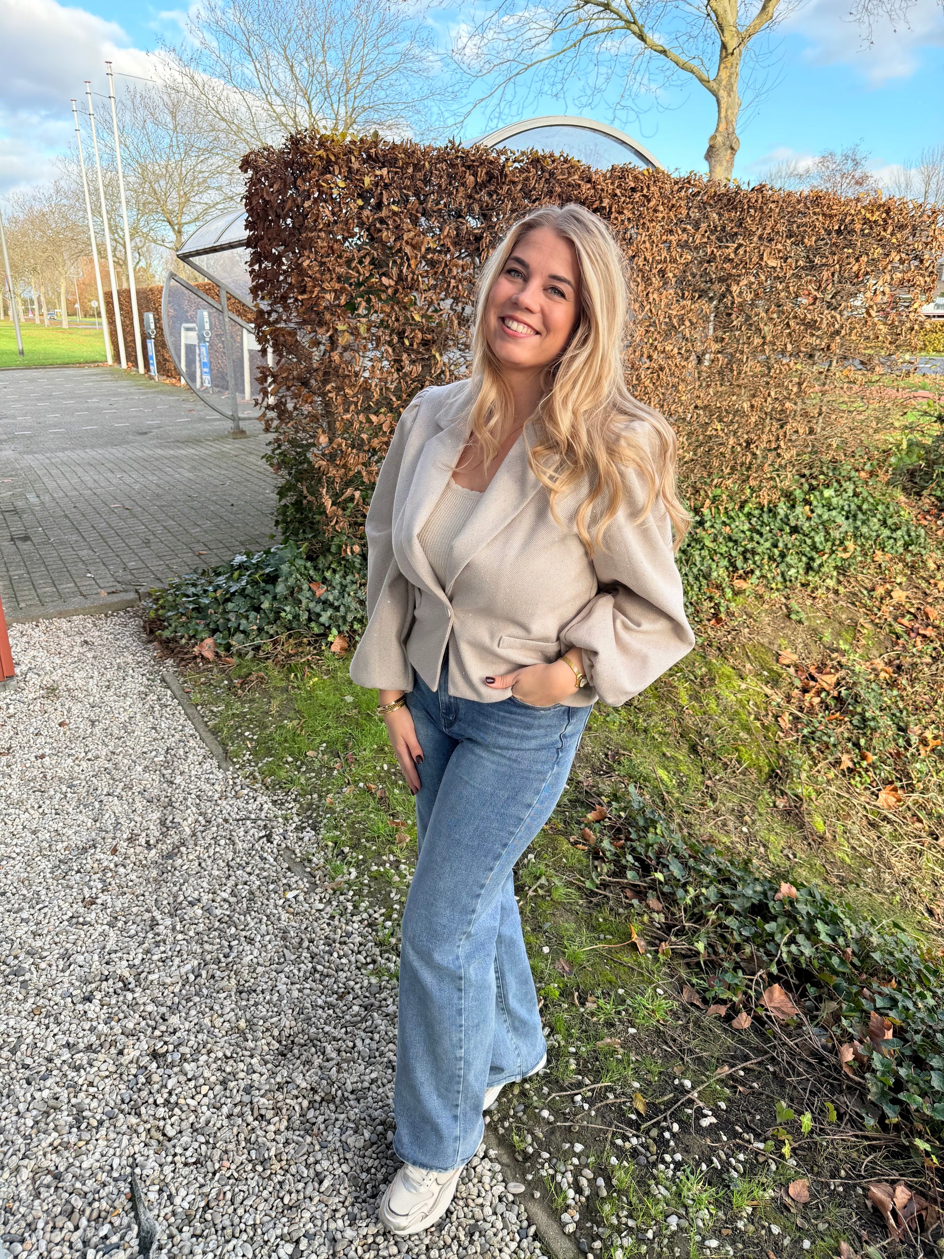 Deze blazer is de perfecte mix van trendy & chique! De subtiele strass steentjes geven blazer Sara net wat extra. De blazer is een wat korter model, heeft een pofmouw, een knoopsluiting en is van een mooie dikkere stof.