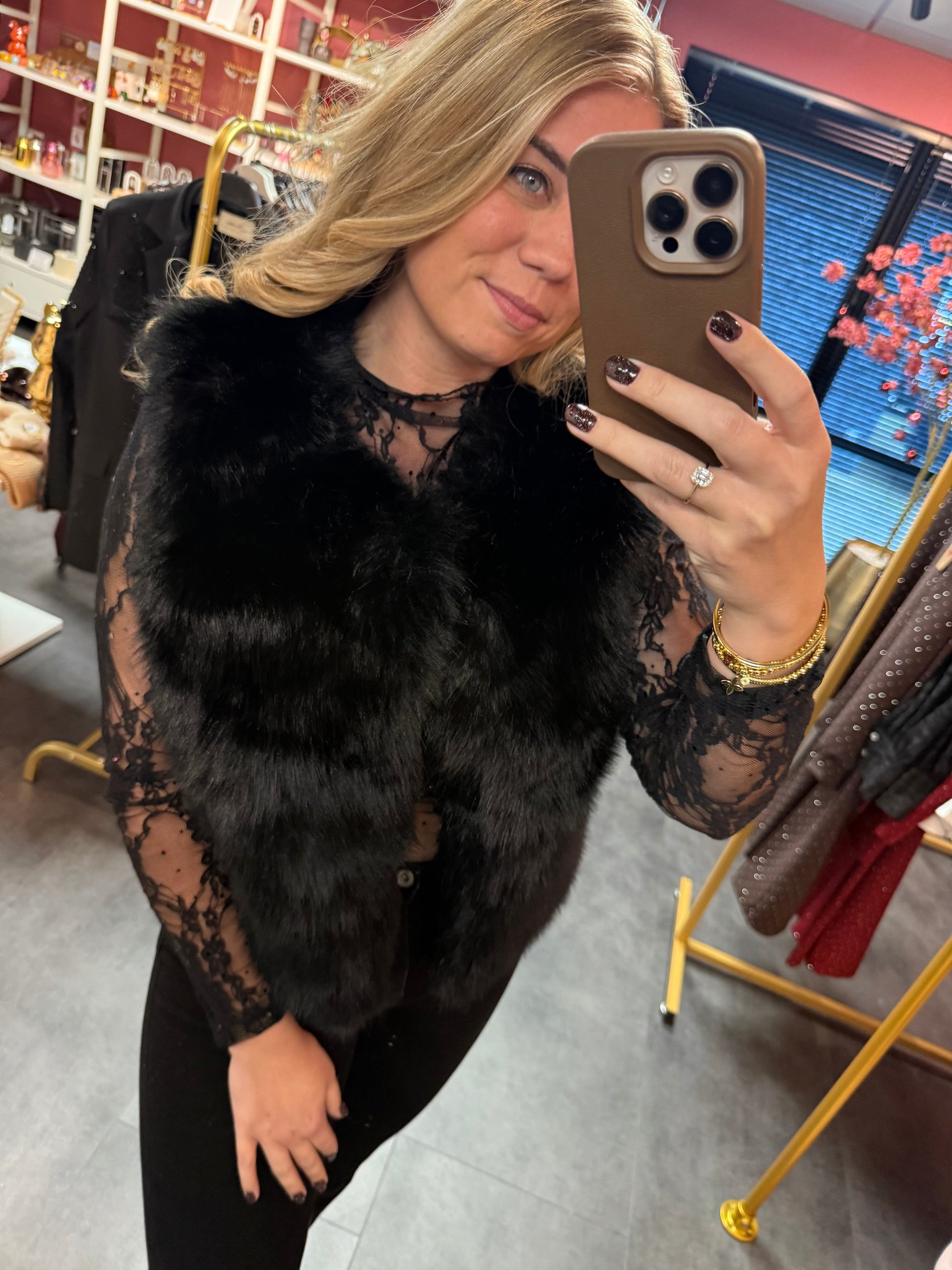De faux fur gilet draag je leuk over een trui of een mooie top.