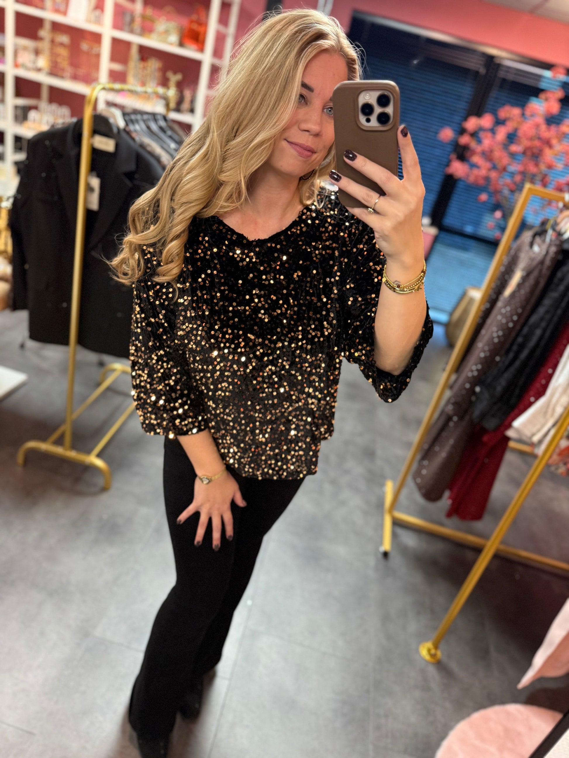 De ultieme party top! Top Suzy is volledig bezet met sprankelende pailletten.