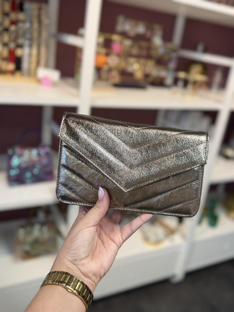 De lederen Laurie tas kan gedragen worden als clutch of als schouder / crossbody tas.