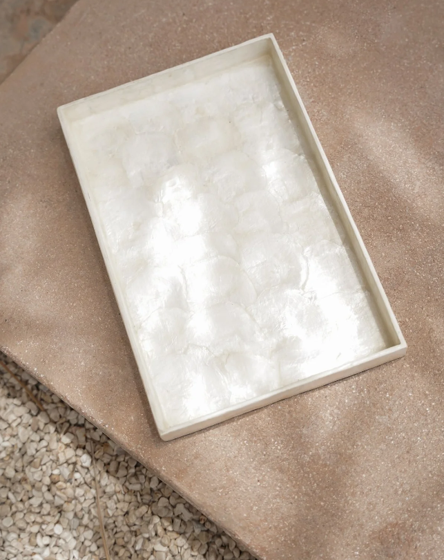 Dit veelzijdige schaaltje kan op verschillende manieren gebruikt worden. Of het nu dient als een charmante opbergoplossing voor sleutels en kleine spullen, of als een sfeervol kaarsplateau op tafel. 'The Capiz Plate' voegt een vleugje natuurlijke allure en functionaliteit toe aan elke ruimte.