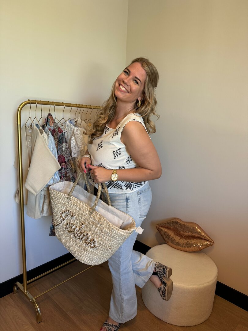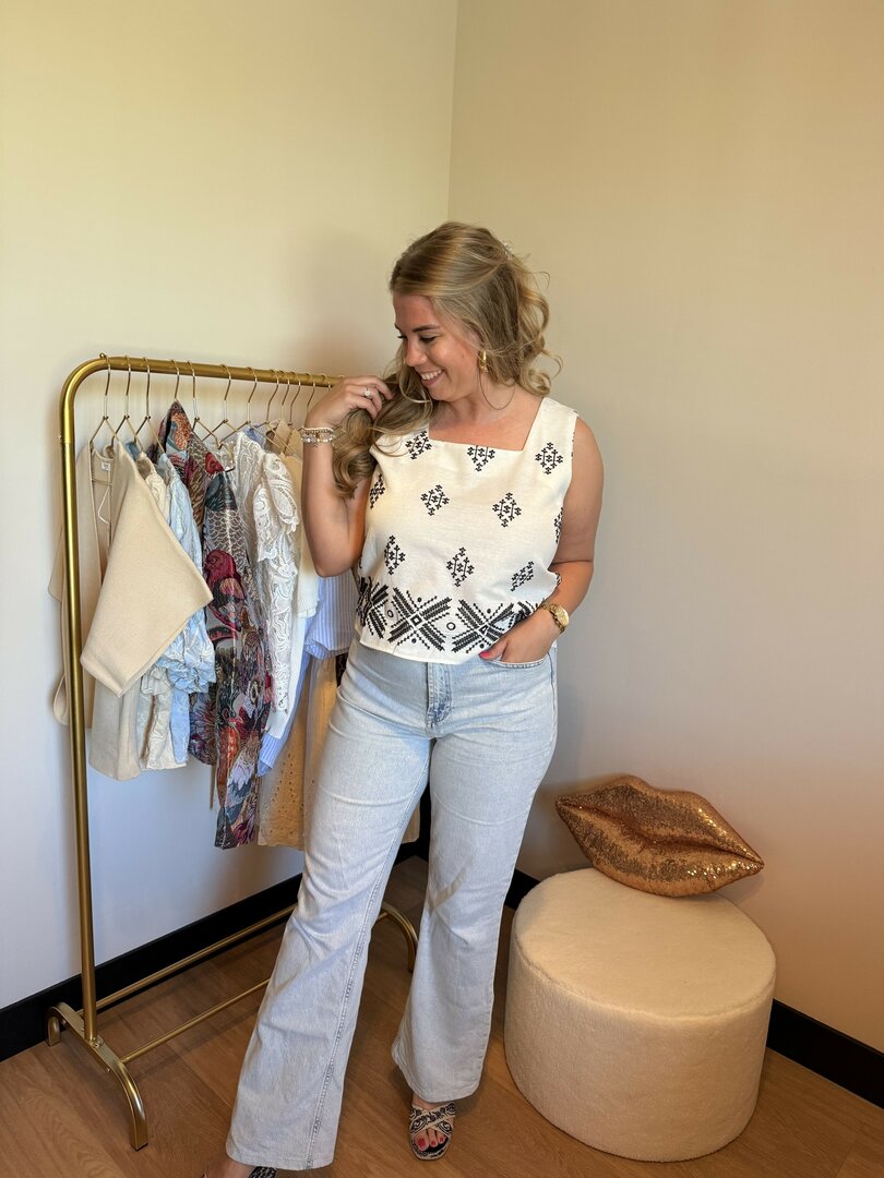 Het leuke borduurde printje op de top zorgt voor een zomerse uitstraling.