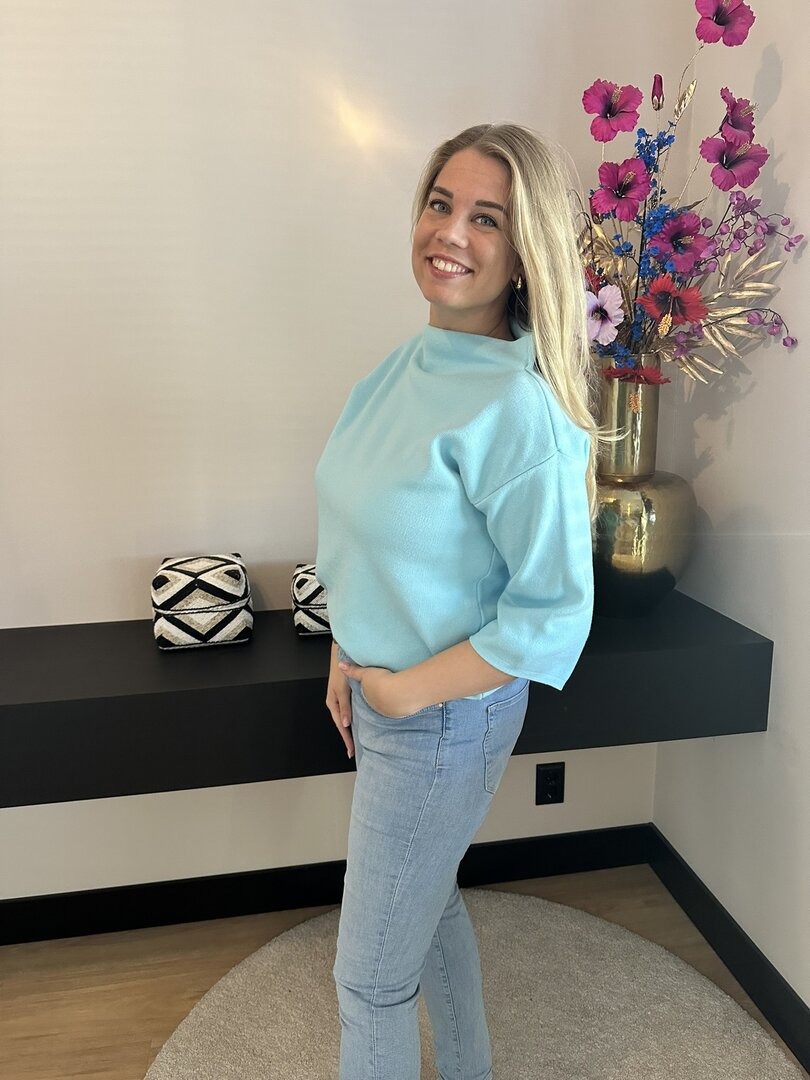 Trui Luna - lichtblauw met driekwartmouw